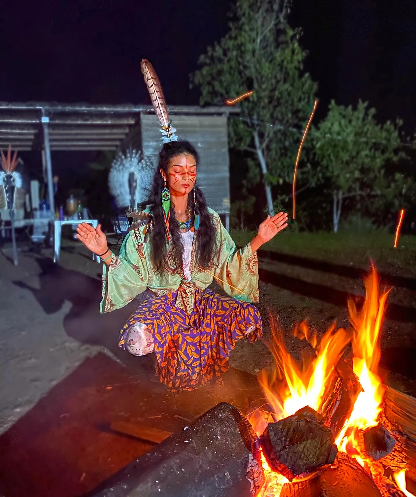 Formada en tradiciones originarias de América Latina, con los pueblos nativos de Yawanawá, Huni Kuin, Noke Koi, Wixárika y especialmente Shipibo-Konibo, completó el 1ª nivel “Niweya” del Curanderismo Shipibo bajo la guía de su maestro de linaje Meraya, integrando disciplina, visión y una comprensión directa del espíritu de las plantas maestras, adentrándose ahora en 2º nivel “Canoya”, donde la entrega se vuelve más profunda en el camino del autoconocimiento y la maestria de las plantas sagradas.